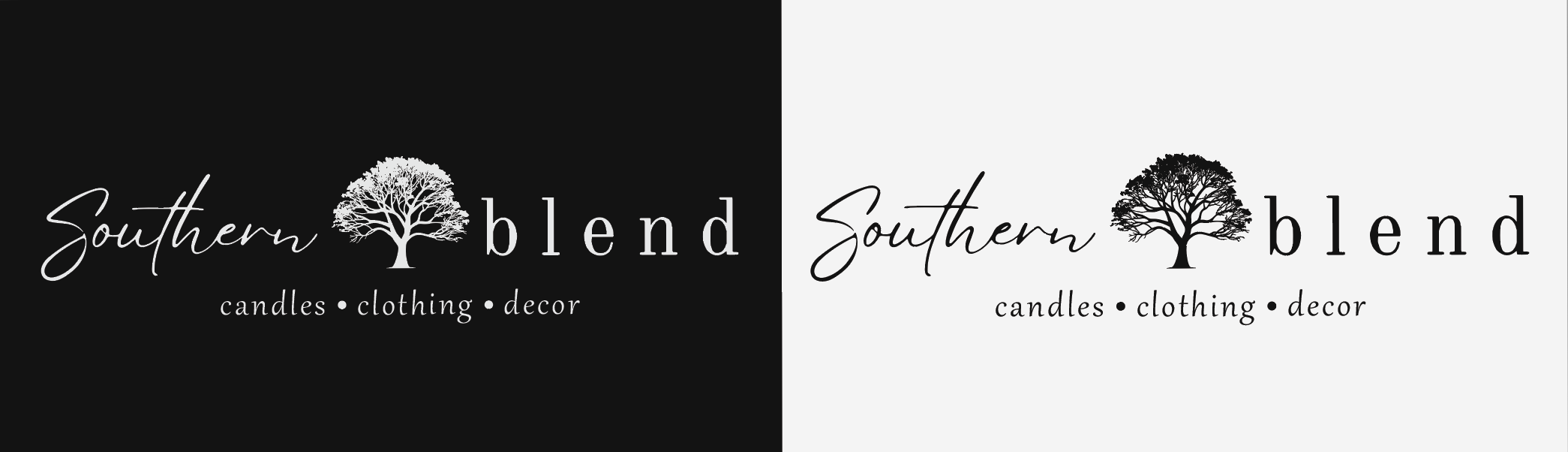 Southern Blend is a lifestyle brand centered around candles, clothing, and home décor, with an emphasis on warmth, simplicity, and organic elegance. This identity exploration focused on creating a timeless, handcrafted feel through refined typography, a minimal black-and-white palette, and an illustrative tree mark symbolizing growth, roots, and longevity. Multiple logo variations were developed to ensure flexibility across packaging, labels, apparel, and digital use while maintaining a cohesive and recognizable brand presence.
